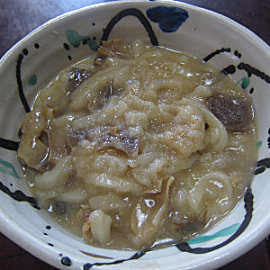 冷凍の讃岐うどんは、水分が出て氷になっていたので、くっついてしまい、