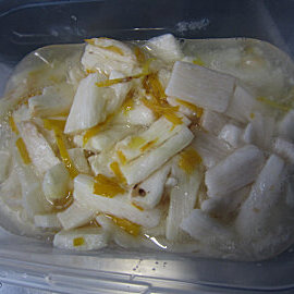 1. 長いもは皮をむいて1cm角4cmくらいの長さの拍子切りにする