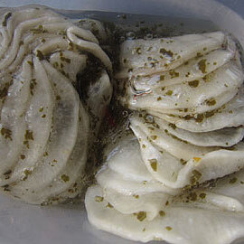 6. 酢と砂糖とみりんを過熱し、残りの昆布と柚子チューブを混ぜ合わせて5に加えます。重しをかけて冷蔵庫に3日保存しておく。