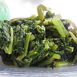 5. 耐熱容器にA を入れてラップをして600wで1分温めたら、大根の葉に加えます。