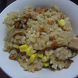 3. 炊飯器の釜に全部(具を入れるのは最後)入れて軽く混ぜ炊飯する。